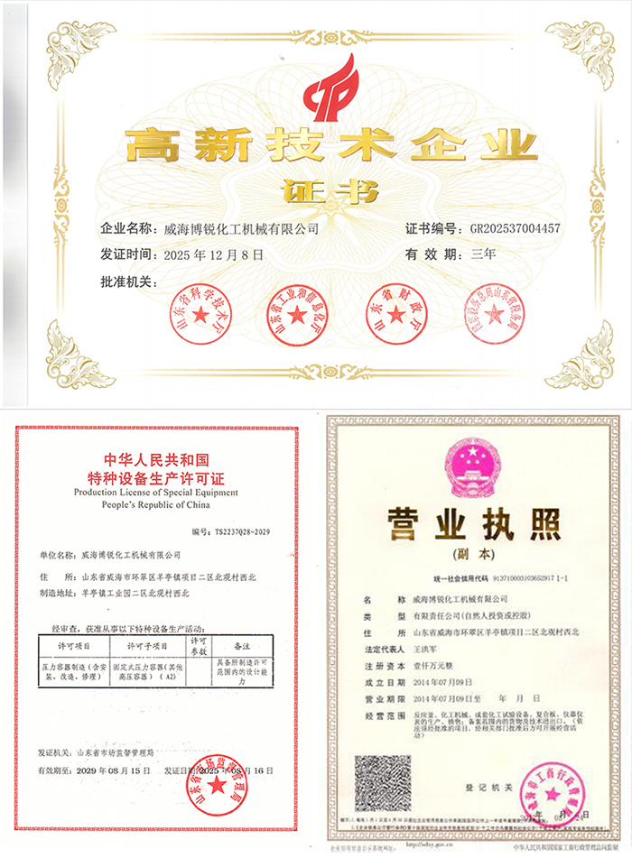 WEIHAI BORUI CHEMICAL MACHINERY CO., LTD. is a professional manufacturer of high-pressure reactor and other chemical equipment in China, the company's leading products are various kind of reactors like magnetically driven high-pressure reactors, stainless steel reactors, non-ferrous metals reactors, and mechanically sealed reactors, we also can produce heat exchangers, towers, storage tanks, the materials of the reactors could be stainless steel, carbon steel, various kind of alloy steel like Titanium, Nickel, Hastelloy, Monel, Inconel and other special materials …etc.